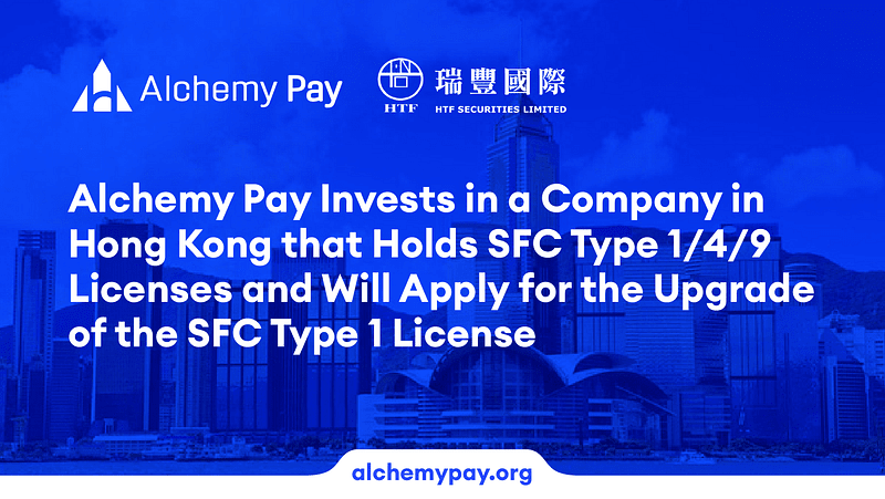 Alchemy Pay a obtenu l'accès aux licences SFC Type 1/4/9 via un investissement dans la société licenciée à HK HTF Securities Limited et fera une demande pour la mise à niveau de la licence SFC Type 1.