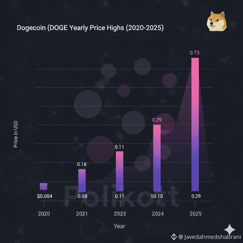 📈 2020: The Humble Beginnings ✨ Back in 2020, Dogecoin was trading at a tiny $0.004. It was mostly a fun "tip" currency for the internet, but the foundation for something massive was being laid.