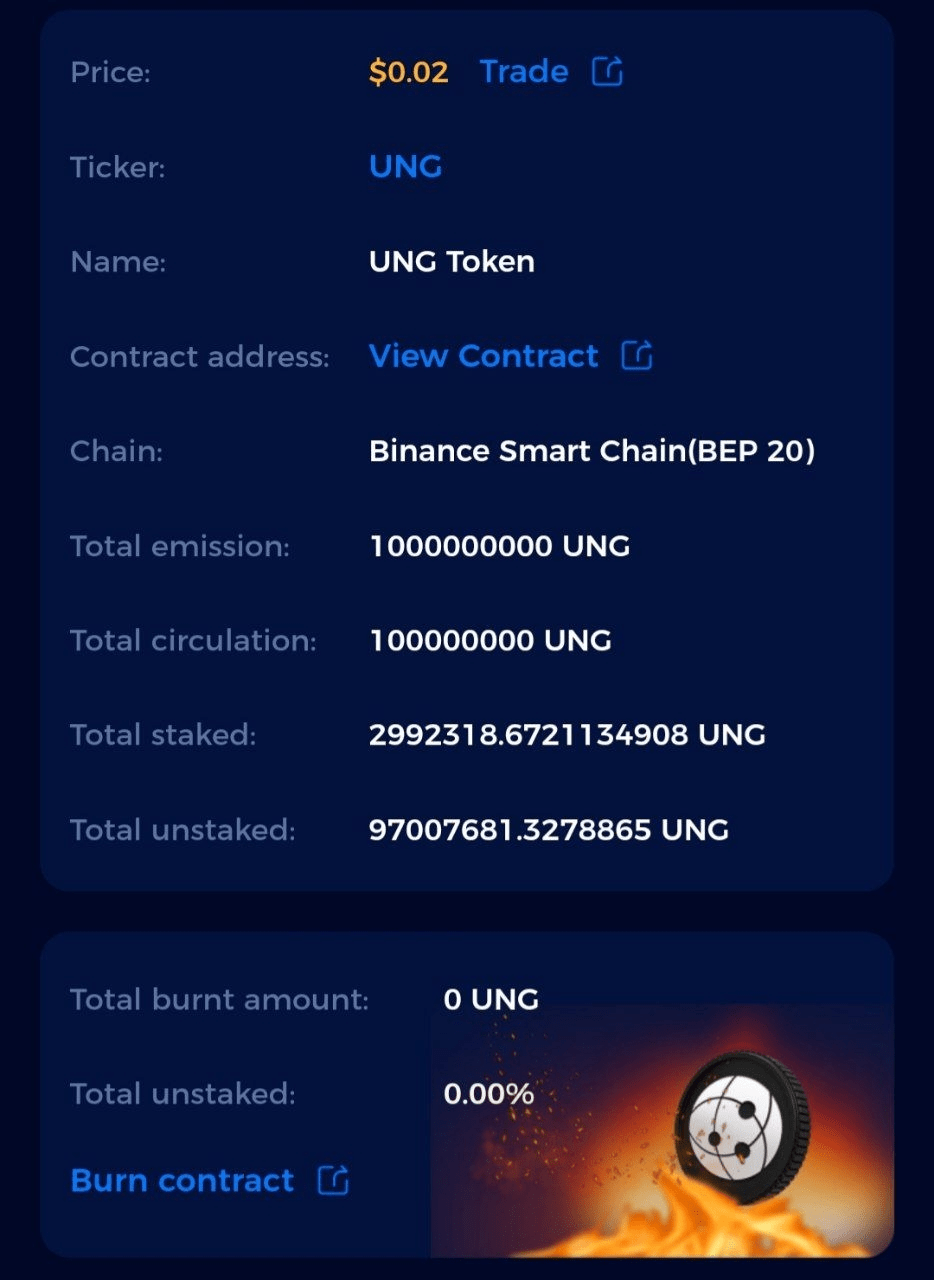 UNG adalah mata uang token internal yang dikeluarkan oleh platform Uunse berdasarkan BSC (Binance Smart Chain), dengan fitur desentralisasi, transaksi anonim, dan keamanan. Solusi penambangan unik UNG dengan mempertaruhkan peluang menjadi ciri khas Uunse, kami dapat menerima sebagian keuntungan platform dari kumpulan dividen.
