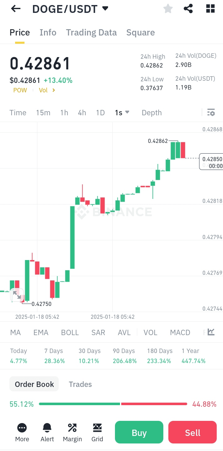 Berdasarkan gambar yang Anda bagikan, Dogecoin ($DOGE