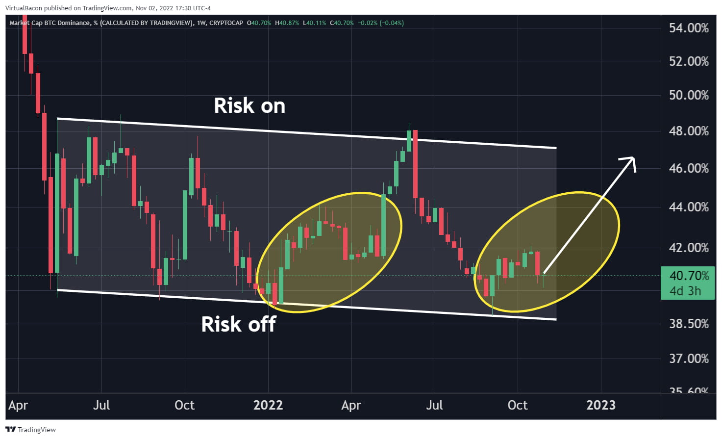 Kami masih berada dalam pasar bearish. Fokus pada akumulasi Bitcoin dan Ethereum, dan tunggu peluang yang datang. Secara pribadi saya akan terus menunggu sampai Dominasi Bitcoin mendekati level 47% sebelum membeli posisi Altcoin untuk jangka panjang.