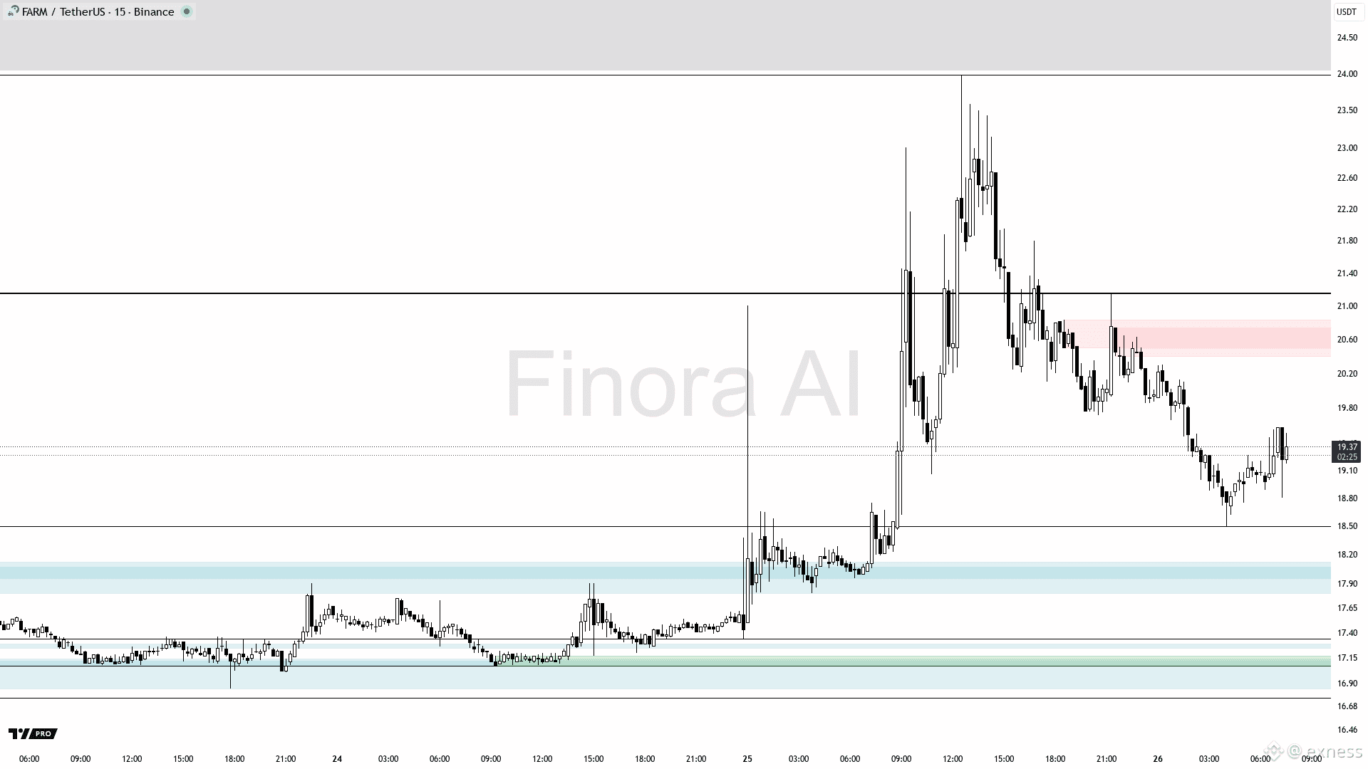 - At the moment, I expect FARMUSDT to RISE in the short term, with the price likely to retest the 20.43 resistance and possibly move higher to the 21.16–21.68 region if momentum continues.