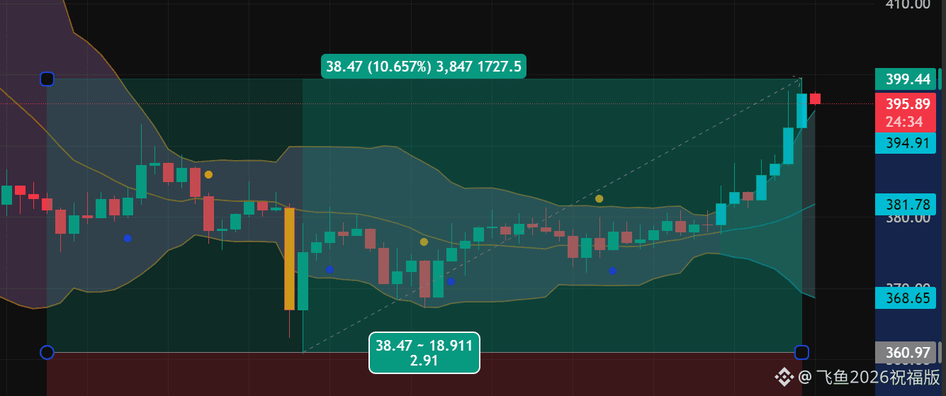 刚刚反弹到399.6 完成TP2。现在同样设置保本。这波涨幅10.6% 吃吃吃!!!