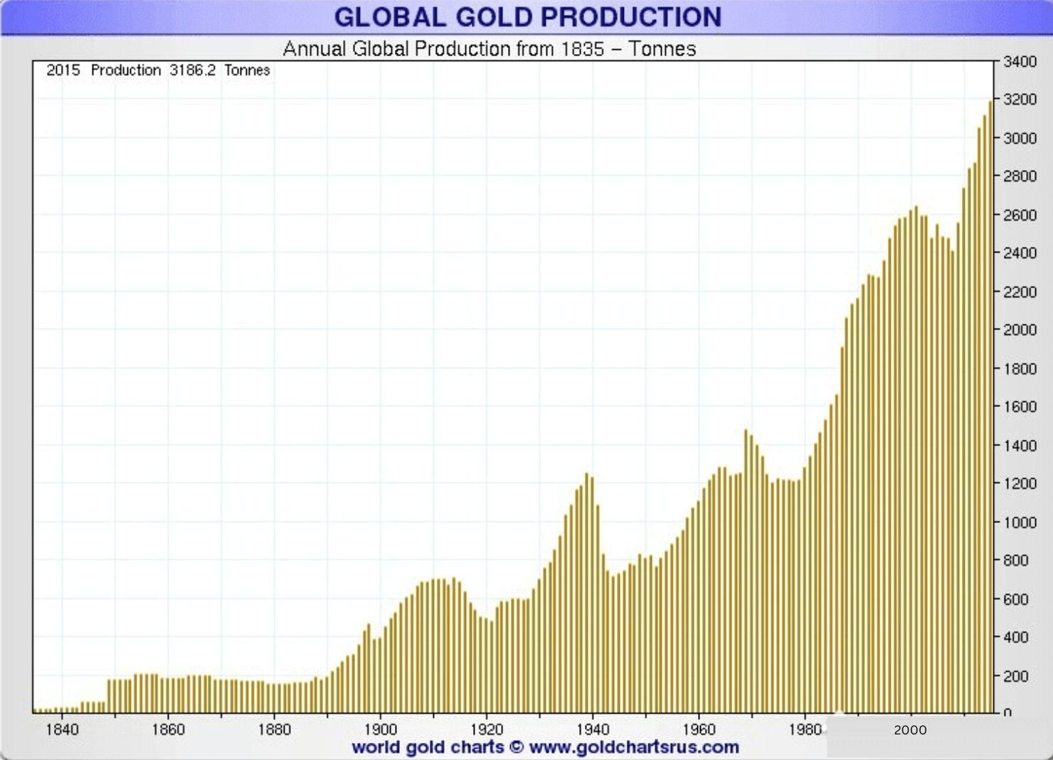 Bayangkan ini: bagaimana jika umat manusia menghentikan penambangan emas sekitar tahun 500 M? Tidak ada pasokan tambahan. Selamanya. Sebuah dasar moneter yang sepenuhnya terbatas. Dalam skenario seperti itu, satu ons emas tidak akan diperdagangkan dengan beberapa ribu dolar hari ini.