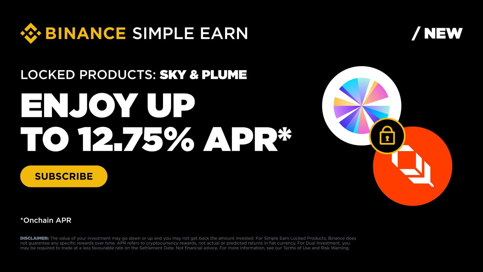 Binance Simple Earn menambahkan Sky (SKY) dan Plume (PLUME) ke Produk Terkunci. Lengkapi langganan Produk Terkunci SKY dan PLUME mulai 08-01-2026 pukul 10:00 (UTC) untuk mulai memperoleh reward.
