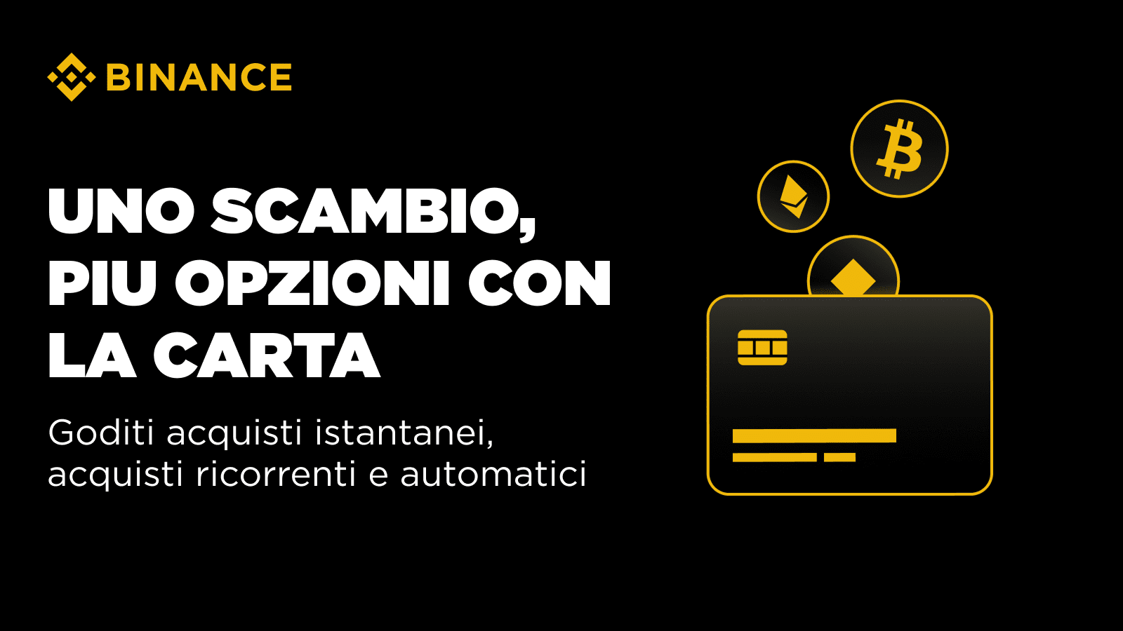 Gli utenti Binance possono esplorare le seguenti funzionalità di trading utilizzando la propria carta come metodo di pagamento: