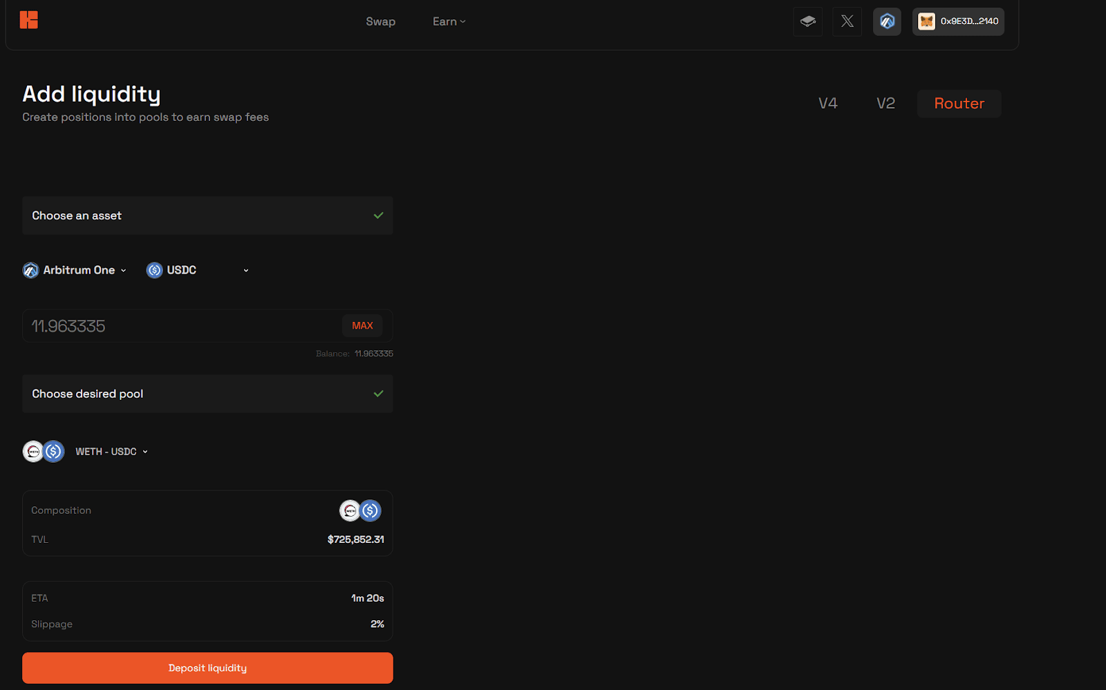 Vai su Earn -> Positions -> Router. Oppure clicca qui.