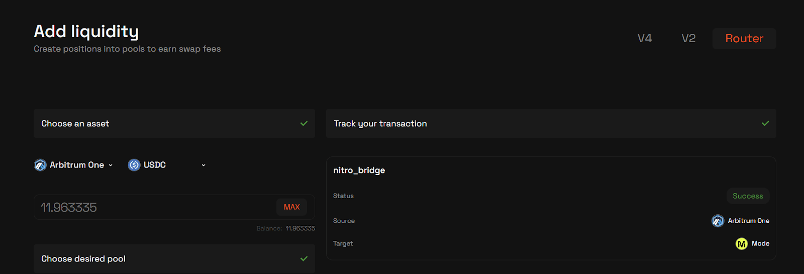 E abbiamo fatto un ulteriore passo avanti, integrando la tecnologia Router direttamente in Kim: puoi creare un ponte e fornire liquidità in un paio di clic da altre catene con un solo clic.