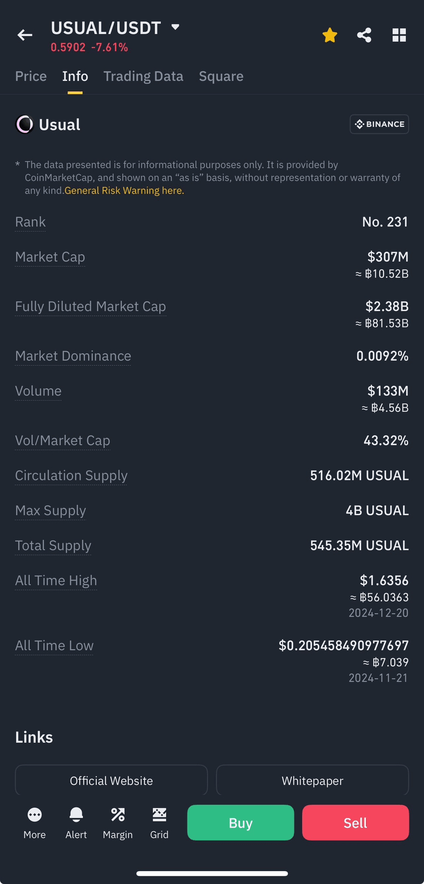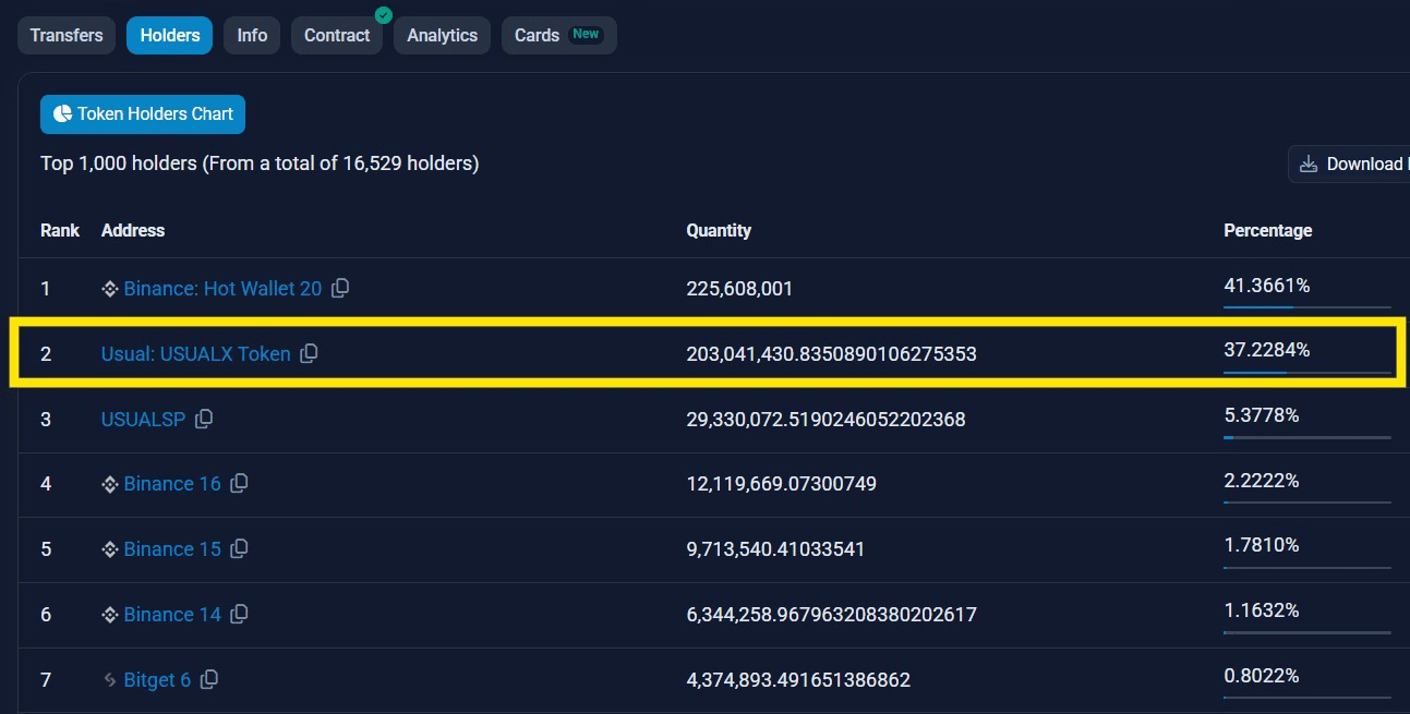 Ciò significa che attualmente sul mercato sono disponibili per la negoziazione solo 313 milioni di USUAL.