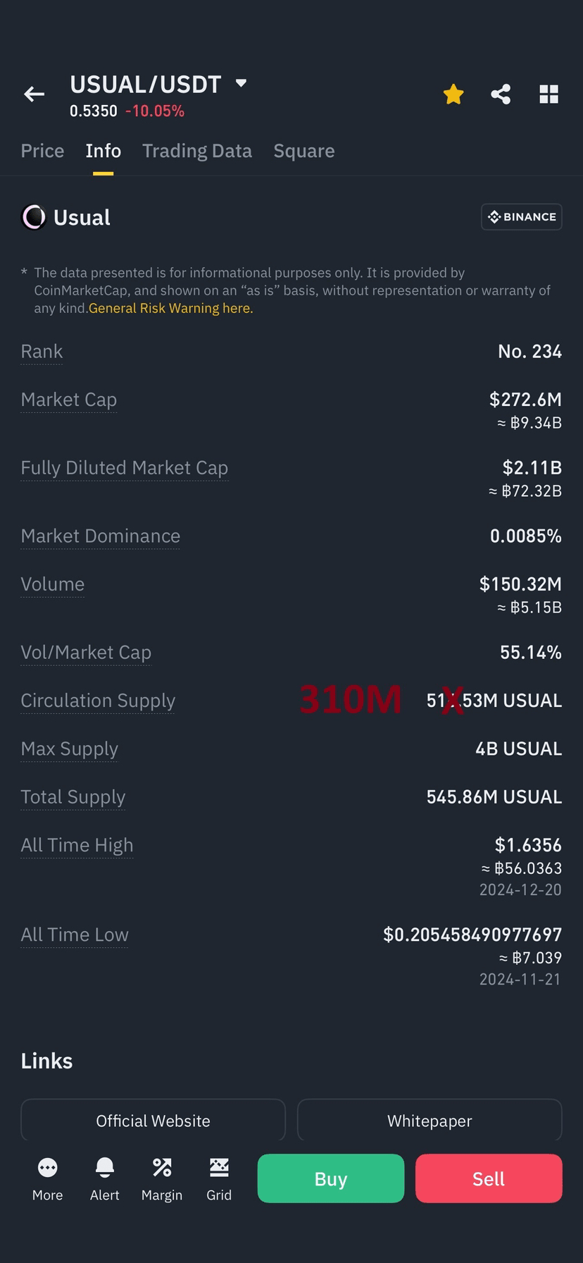 • Quantità totale circolante di USUAL: 516,53 milioni di USUAL.