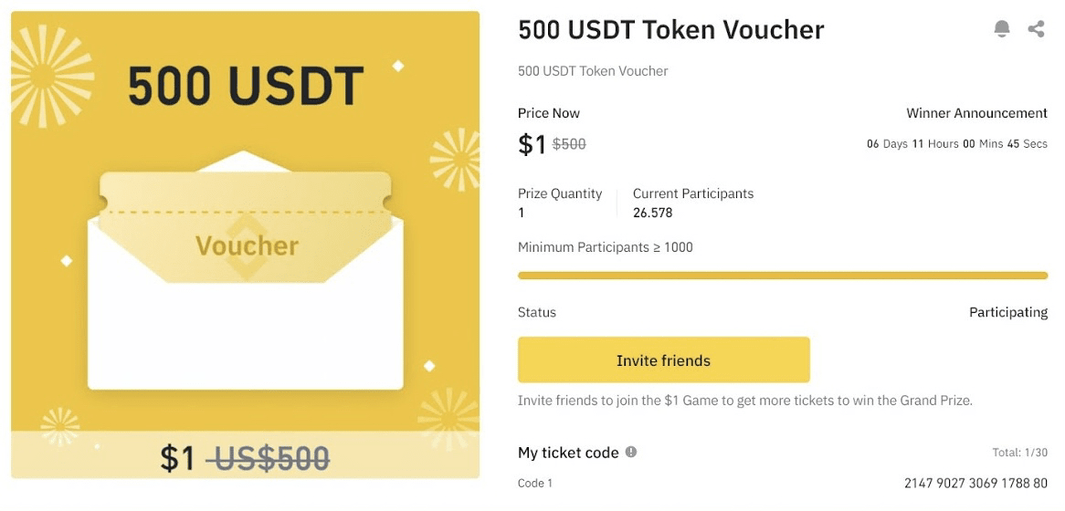 Il $1 Game di Binance Pay è tornato con una proposta irresistibile: la possibilità di trasformare un semplice $1 in un sostanziale voucher in token USDT da $500. Ecco perché questo gioco merita la tua attenzione: