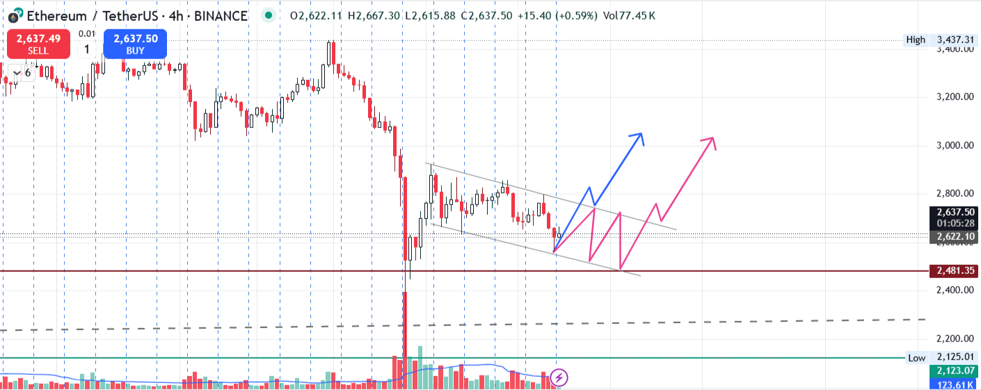 Dal grafico attuale, ETH e la maggior parte delle altcoin hanno formato un canale in discesa. Il mercato è così ingarbugliato. Ogni analista sta aspettando che il prezzo superi il prezzo di resistenza, ma il mercato manca di slancio e non ha motivazione per uscire, quindi torna sempre nel canale.