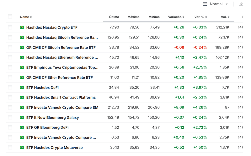 Gli ETF sulle criptovalute muovono 150 milioni di R$ al giorno su B3.