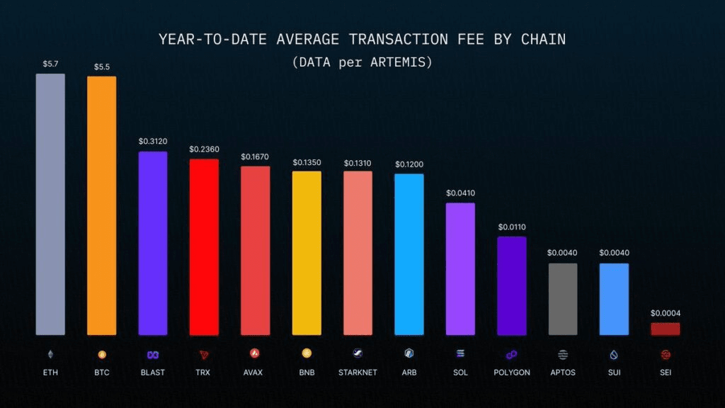 Una metrica eccezionale è rappresentata dalle ultra-basse commissioni di transazione di SEI, che rimangono a soli $0.004 - una frazione dei costi su altre catene popolari: