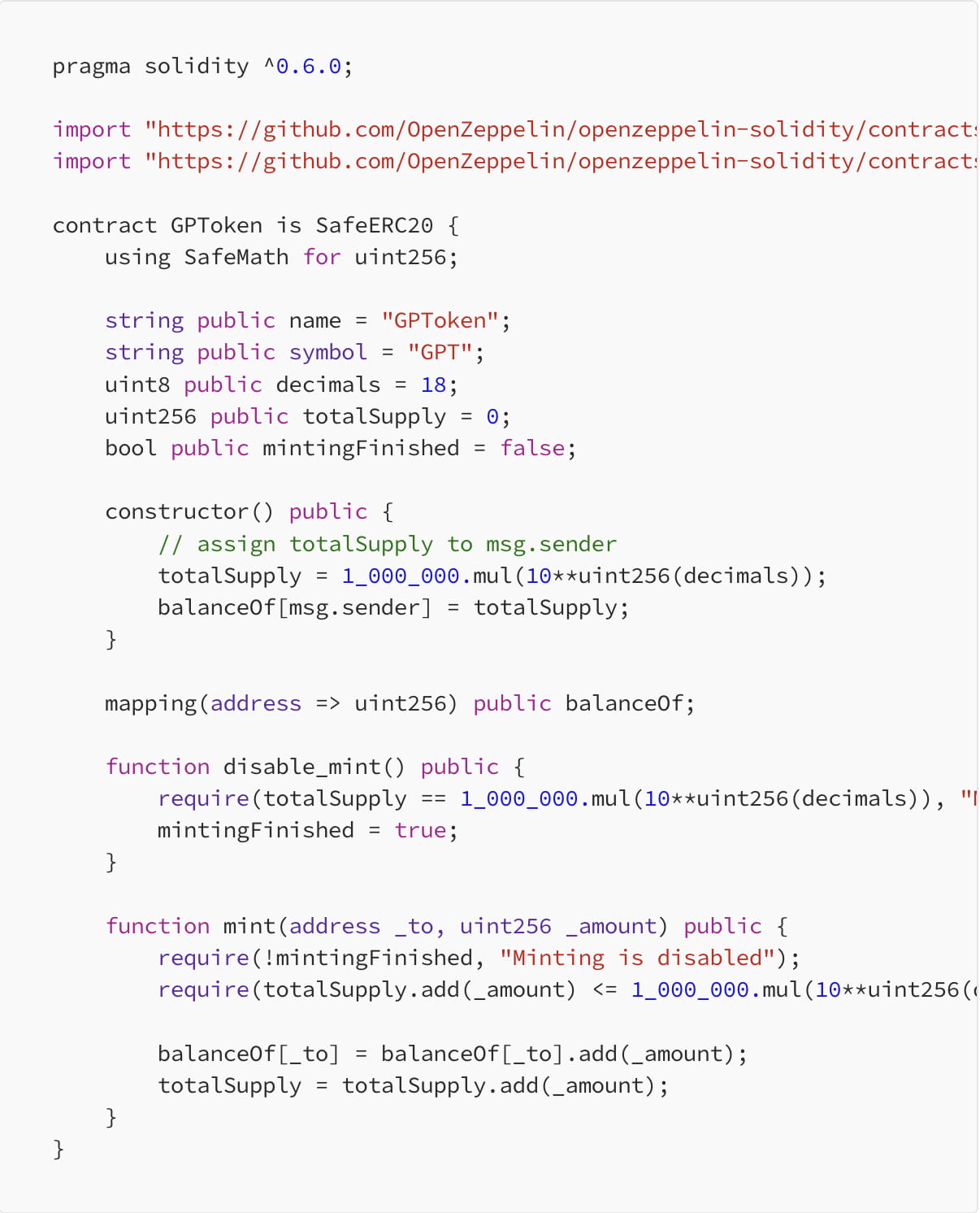 Sebbene questo contratto intelligente abbia un certo stile e potenziale di ottimizzazione, come la rimozione dell'uso dei decimali (poiché il numero di token sarà sempre un numero intero) e l'aggiunta di un'istruzione if per verificare se il numero di token è uguale a 1 milione e disable_mint if quindi, ottiene l'essenza di base del codice del contratto intelligente e funge da ottimo punto di partenza. Dato che gran parte del tempo di sviluppo è dedicato alla creazione di questi modelli standard, ChatGPT può aumentare drasticamente il ritmo di sviluppo. Le sue capacità sono particolarmente impressionanti se consideriamo che il suo output può essere personalizzato in vari casi d'uso (come il Disable-Mint da 1 milione di token qui) che le tradizionali guide pratiche e di codifica online non possono fornire. Nel campo della creazione, ChatGPT riduce quindi di molto l’equivalente del “blocco dello scrittore” per lo sviluppatore, dove hai una vaga idea di come potrebbe apparire il codice ma non sai da dove cominciare.