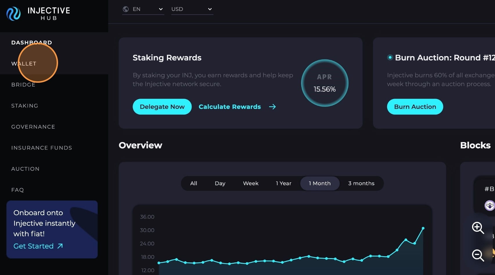 Successivamente, per ricevere l'indirizzo del tuo portafoglio Injective, vai su https://hub.injective.network/