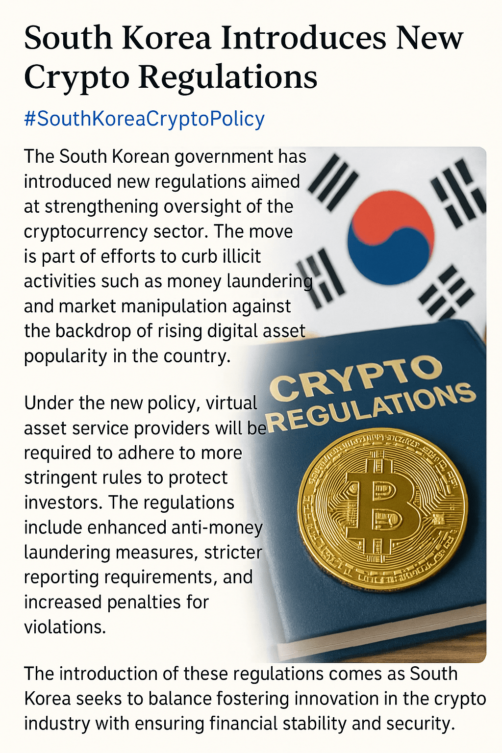 In una mossa decisiva per regolare l'industria delle risorse digitali in rapida crescita, la Corea del Sud ha introdotto un nuovo insieme di regolamenti sulle criptovalute. L'iniziativa mira a migliorare la trasparenza, proteggere gli investitori e prevenire attività finanziarie illecite come il riciclaggio di denaro e le frodi.