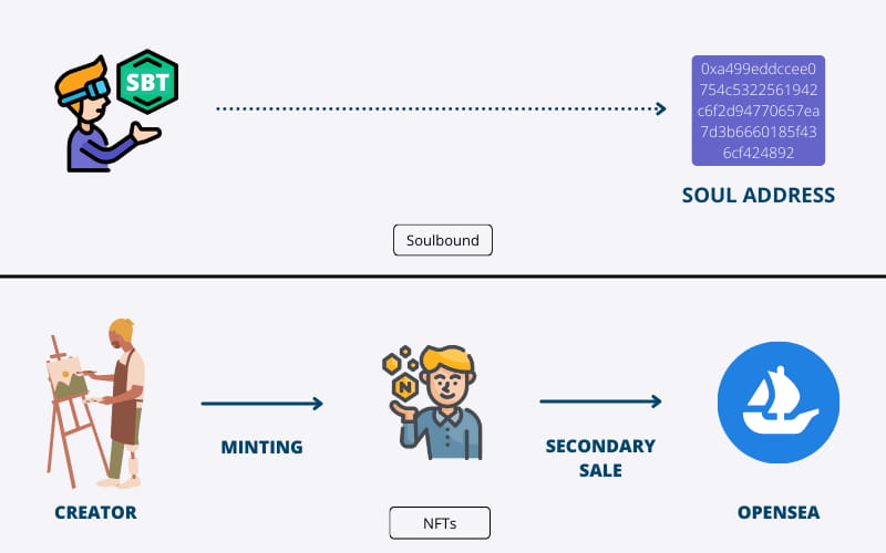 I token soulbound funzionano utilizzando una combinazione di tecnologia blockchain e smart contract. Quando viene creato un token soulbound, viene assegnato a un account o utente specifico utilizzando un identificatore univoco come una chiave pubblica o un indirizzo di portafoglio.