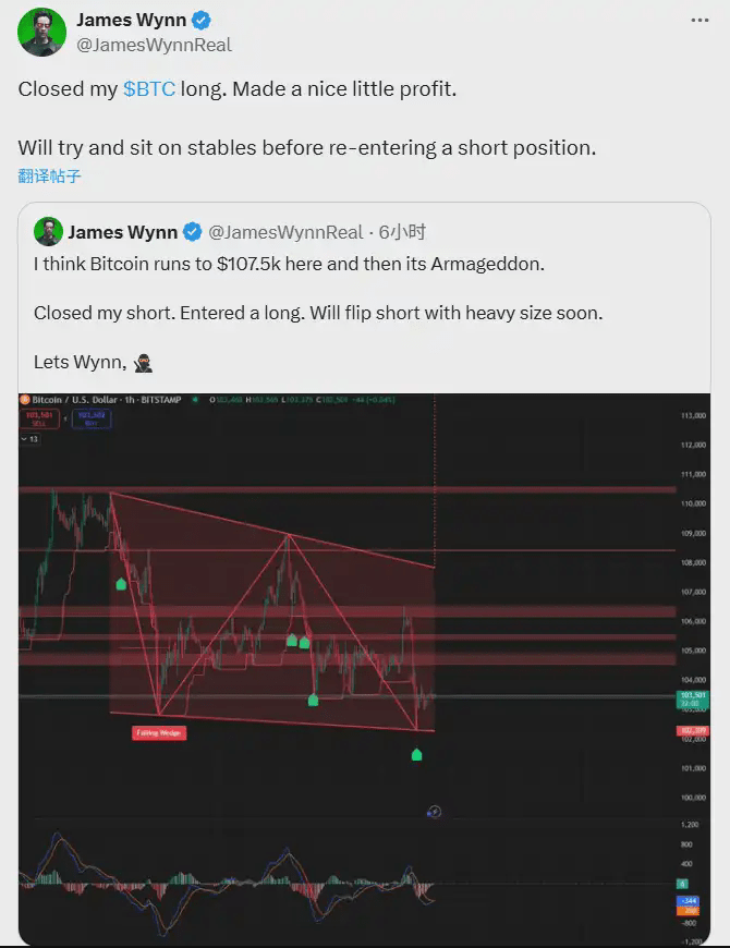$BTC #USNationalDebt #MarketPullback #PowellVsTrump #SwingTradingStrategy #XSuperApp Secondo BlockBeats del 21/6, James Wynn ha condiviso sulla sua pagina personale: "Ho appena chiuso l'ordine di acquisto di BTC con un piccolo profitto. Ora terrò stablecoin e attenderò l'opportunità per aprire un ordine di vendita allo scoperto."