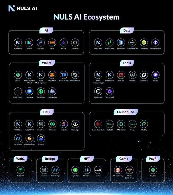 Rivedi l'ecosistema NULS AI:- IA- Dati- Portafoglio- Strumenti- Defi- Launchpad- Web3- Ponte - NFT- Gioco- PayFiQuale applicazione pensi che dovremmo costruire sulla catena NULS AI?