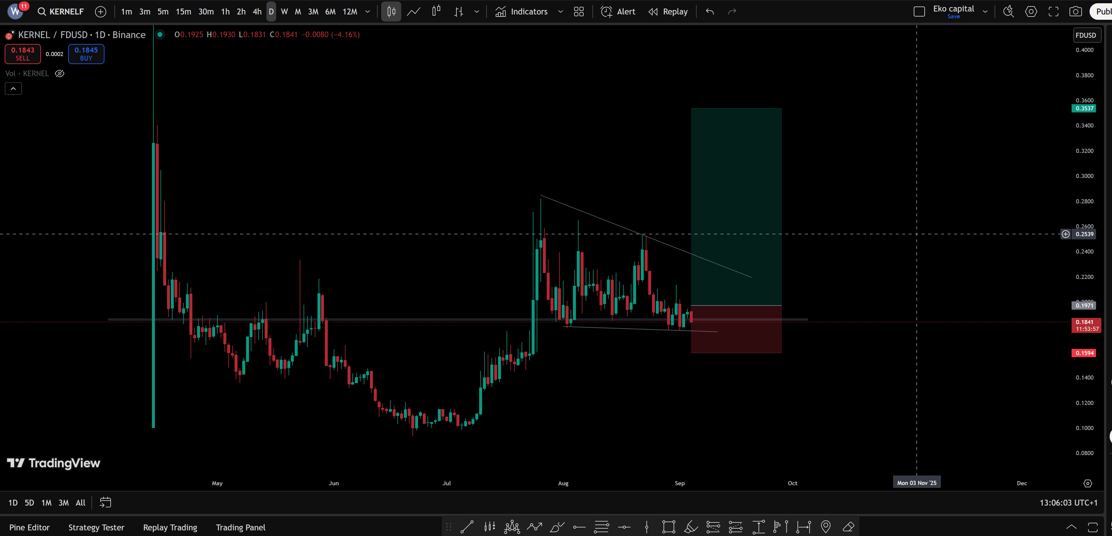 In breve: $KERNEL è in un punto di inflessione, difendendo la domanda con il potenziale di sorprendere al rialzo. Un breakout di successo sopra 0.20–0.25 potrebbe sbloccare un'espansione molto più ampia.