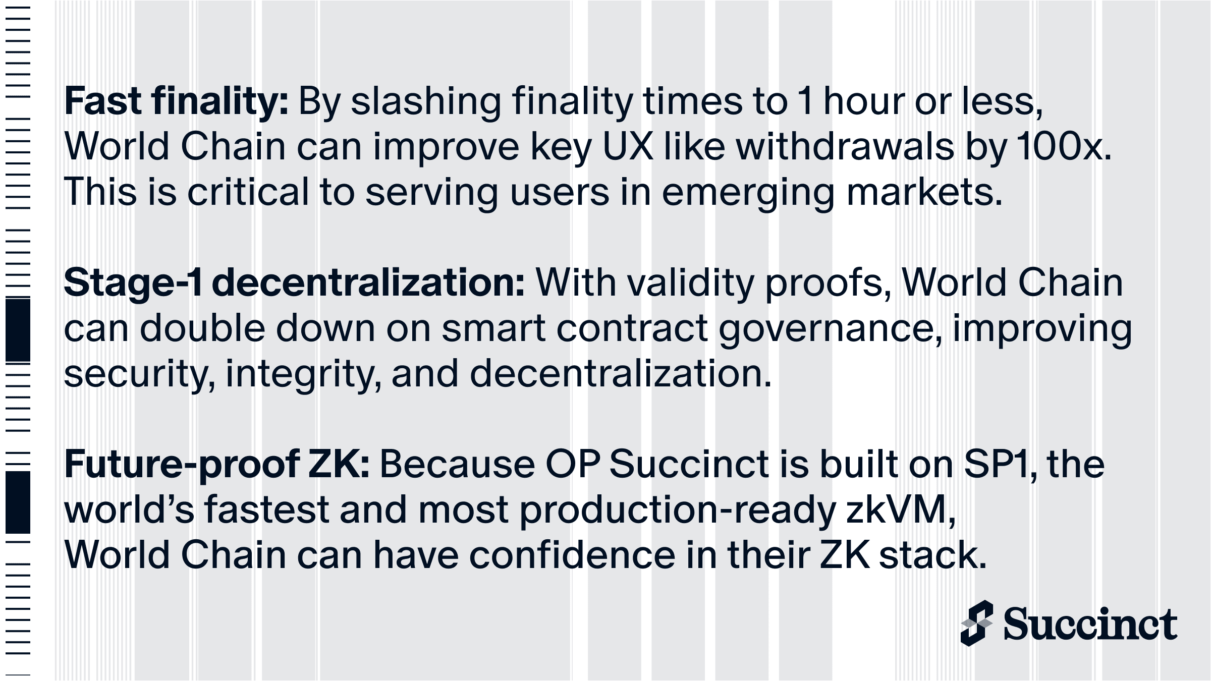 La tecnologia di Succinct ha un valore significativo in diversi scenari applicativi. Nel contesto ecologico inter-chain, la sua verifica a conoscenza zero consente la verifica affidabile a basso costo di ponti di asset, messaggi inter-chain e dati oracolari. In scenari di privacy e conformità, gli utenti possono verificare l'identità o le proprietà di qualificazione tramite prove a conoscenza zero senza rivelare informazioni sensibili. In scenari di calcolo distribuito e intelligenza artificiale on-chain, Succinct fornisce risultati di calcolo verificabili, supportando le applicazioni complesse on-chain e su larga scala.