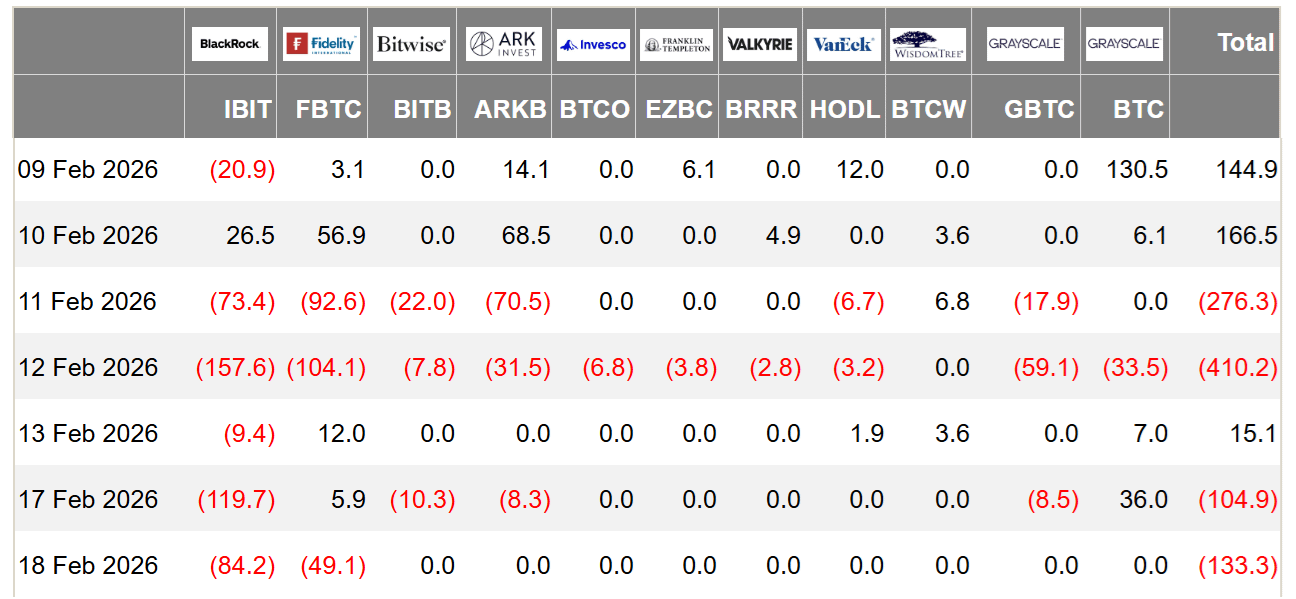 Gli ETF Bitcoin quotati negli Stati Uniti hanno visto un deflusso totale di 910 milioni di dollari dal 11 febbraio, il che probabilmente ha colto di sorpresa i rialzisti, specialmente mentre Bitcoin veniva scambiato al 47% al di sotto del suo massimo storico, mentre i prezzi dell'oro si aggiravano intorno a 5.000 dollari, in aumento del 15% in soli due mesi. Allo stesso modo, l'indice S&P 500 si trovava solo al 2% al di sotto del proprio massimo storico, indicando che questa avversione al rischio è in gran parte limitata al settore delle criptovalute.