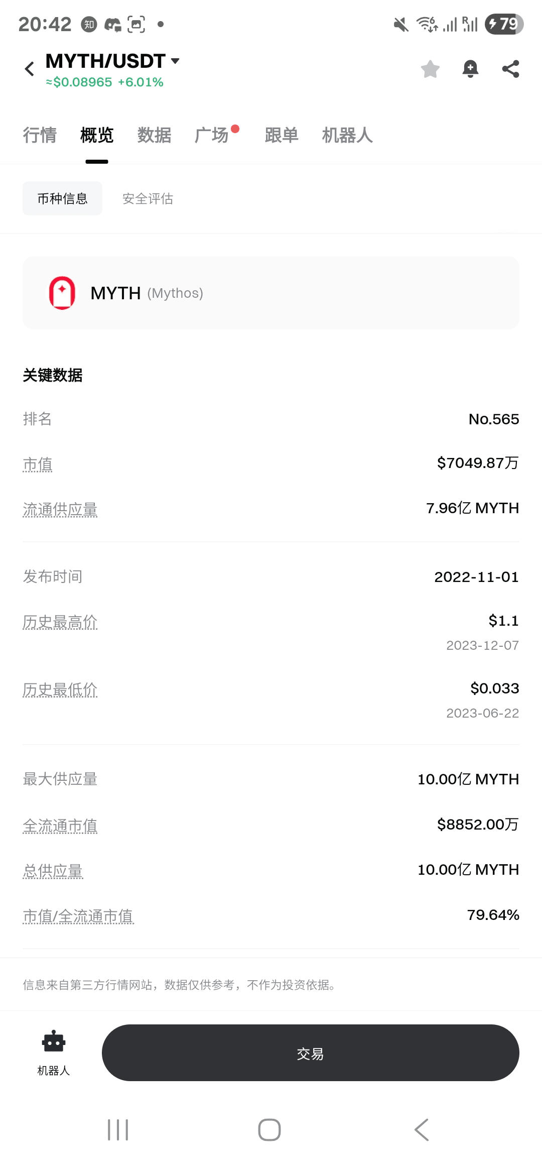 Mythos Token è $MYTH, non è ancora su grandi exchange, al momento gli exchange più utilizzati sono solo Gat* e MEX*.