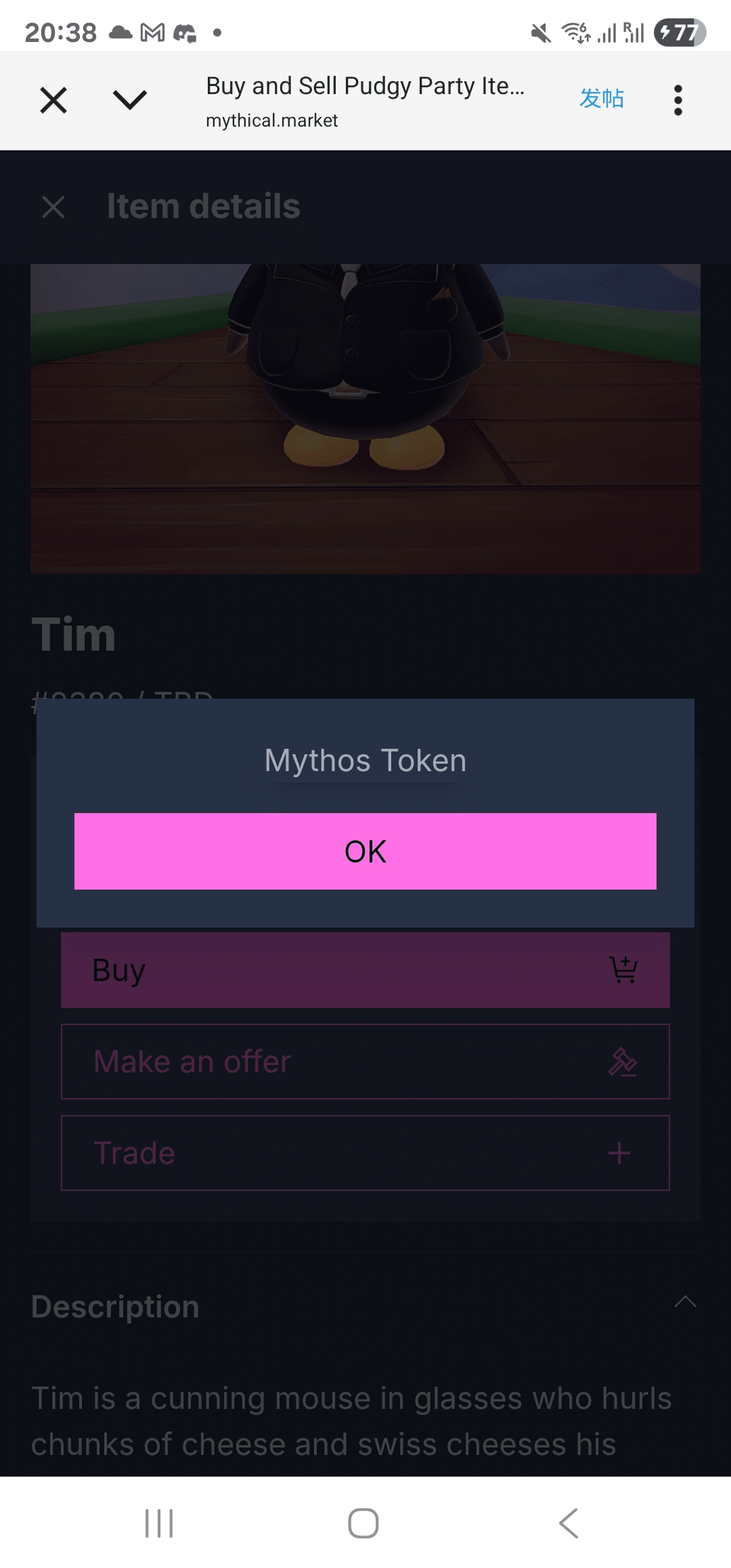 Tra questi giochi, ho provato solo Padgy Party, i giochi di festa non sono il mio genere preferito, quindi non ho speso soldi. Finora, a parte il fatto che prima del lancio del gioco sono stati inviati NFT SBT legati all'anima ai giocatori, gli asset di gioco possono essere scambiati con Mythos Token nel mercato NFT decentralizzato Mythical Marketplace.