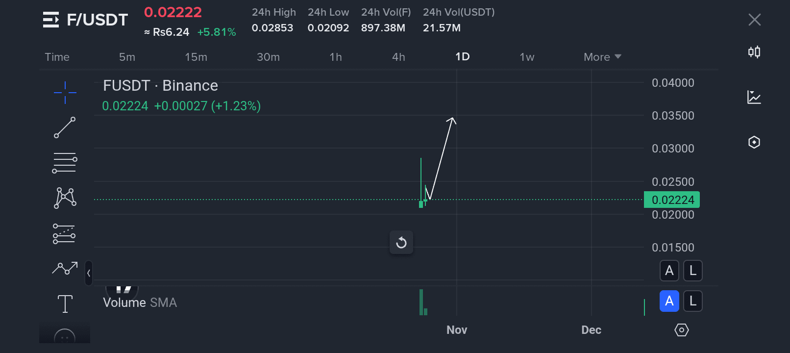 F/USDT ha registrato un notevole rimbalzo dopo aver testato il suo livello di supporto vicino a 0.0209 USDT. Il prezzo è rimbalzato fortemente, formando una candela giornaliera verde che indica una rinnovata pressione di acquisto. I trader stanno osservando da vicino mentre la coppia tenta di superare il livello 0.025, il che potrebbe confermare l'inizio di un forte slancio rialzista.