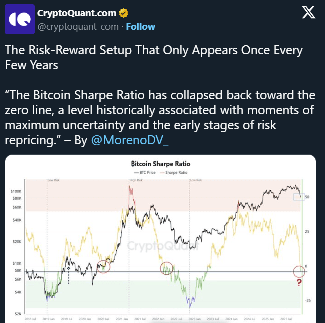 Il rapporto rischio-rendimento $BTC è diventato il più attraente dalla metà del 2023. Questo è dimostrato dai dati di CryptoQuant.