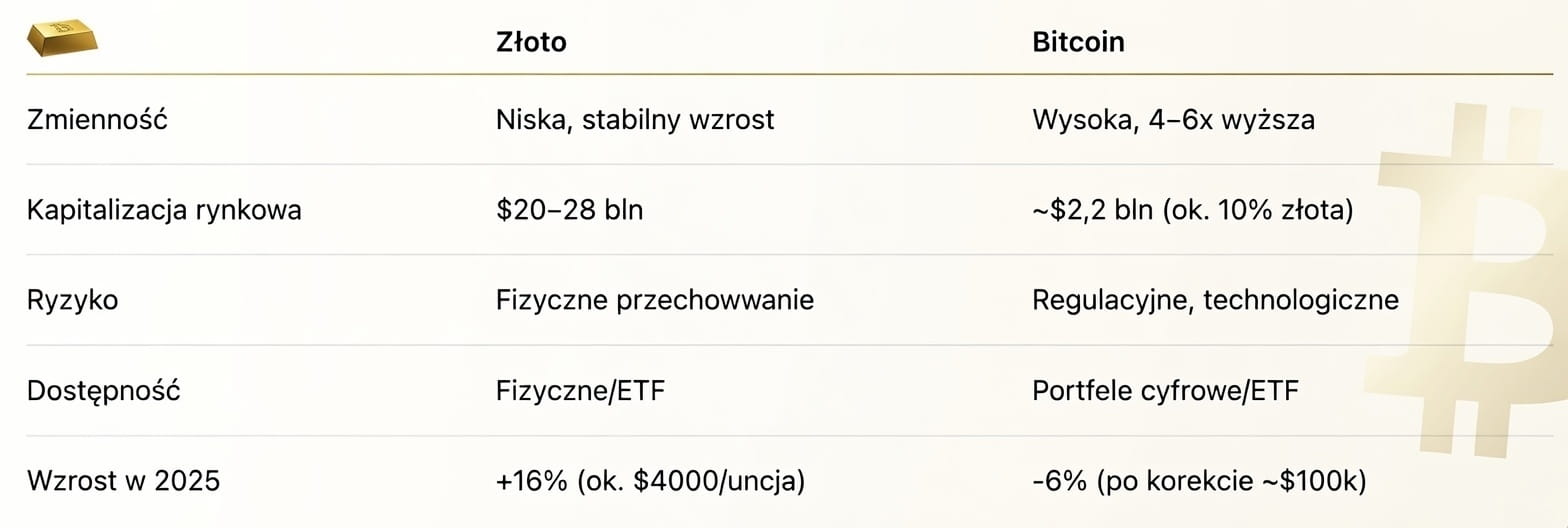 Non si tratta di scegliere solo uno. L'oro protegge il capitale, Bitcoin offre l'opportunità di alti guadagni e protezione dall'inflazione. Nel 2025 la combinazione di entrambi gli attivi – ad esempio, 60% oro e 40% BTC – può portare a una crescita equilibrata con rischio moderato.