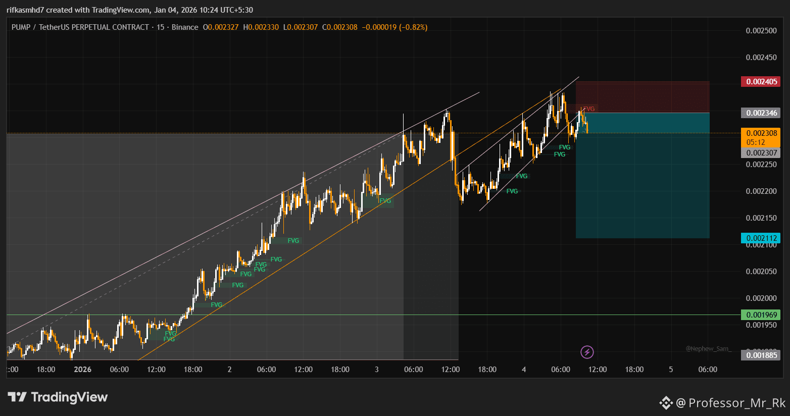 The price of PUMPUSDT has recently broken down from an established upward trend channel**. After this breakdown, it appears to be forming a new, short-term descending trend or undergoing a significant correction. The overall momentum has shifted from bullish to bearish.