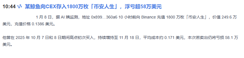 Stamattina, una notizia ha fatto scalpore: l'indirizzo 0x899...360a6 ha ricaricato in un colpo 18 milioni di "Binance Life" su Binance, per un valore vicino ai 2,5 milioni di dollari.