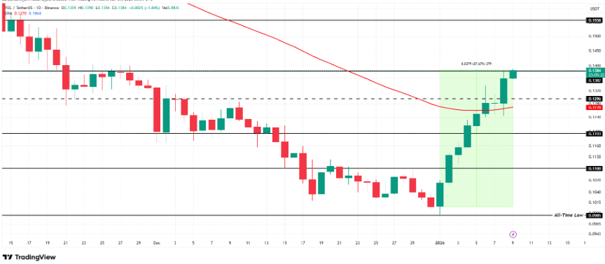 Polygon è diventato un punto focale per l'interesse speculativo dopo aver raggiunto un nuovo minimo storico (ATL) di $0,098 il 1° gennaio. Da quel minimo, POL ha registrato un rialzo del 37,6%, riuscendo a invertire il livello della media mobile esponenziale a 50 giorni in una posizione di supporto. L'obiettivo immediato per i rialzisti in questo fine settimana è riprendere e mantenere il livello di $0,138; riuscendovi, si aprirà la strada verso un obiettivo secondario di $0,155. Tuttavia, il rally rimane fragile. Se la forza rialzista si esaurisce, POL potrebbe scivolare rapidamente verso $0,129, cancellando così i guadagni recenti e riattivando la pressione ribassista che ha tormentato l'asset per gran parte dell'anno precedente.