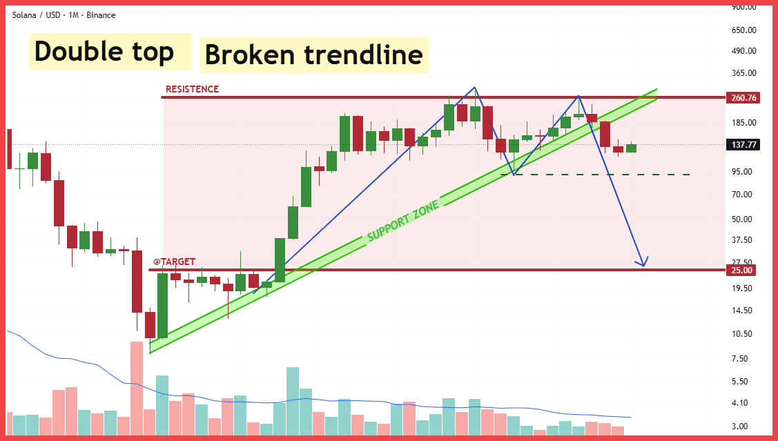 Questo è un annuncio di servizio pubblico: Si prega di essere estremamente cauti con $SOL. Il grafico mensile urla pericolo, suggerendo una possibile fase di capitulazione multi-mensile.