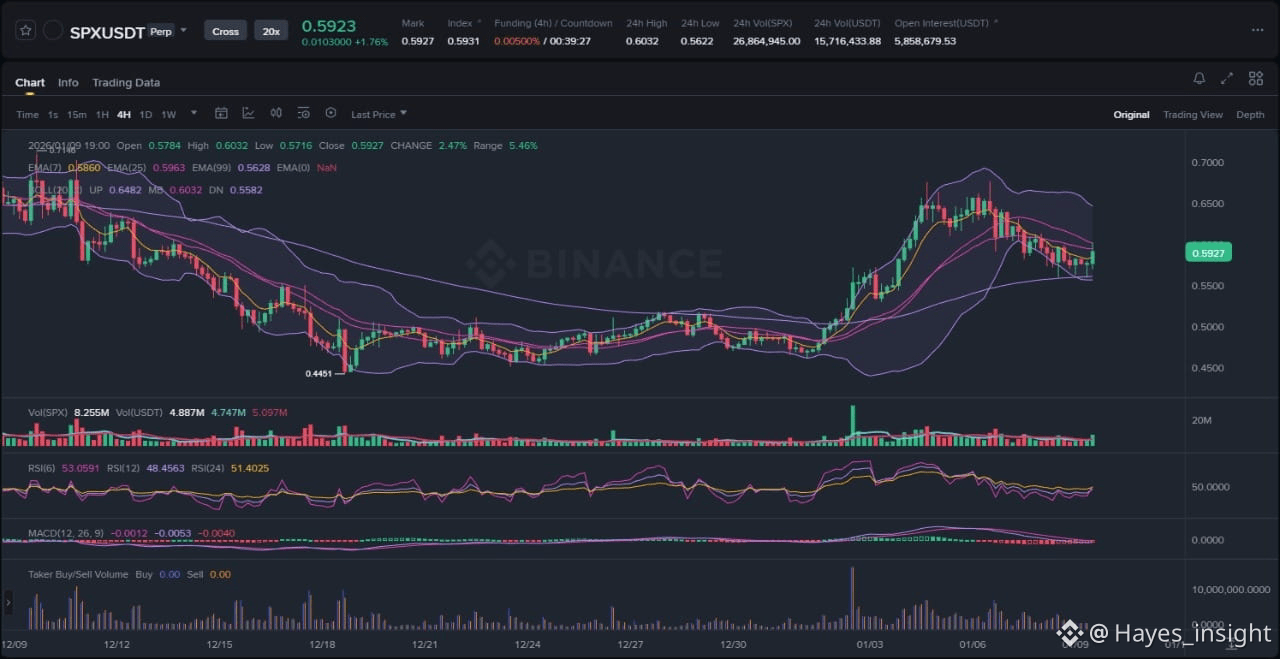 Third, the December 9, 2025, report from The Currency Analytics details SPX targeting $1 after a 12% surge driven by whale activity, with the price breakout influenced by significant large-holder accumulation. This exchange/market theme, centered on whale-driven liquidity, leans bullish, as such moves often precede distribution phases but currently align with the chart's volatility expansion. No bearish undercurrents emerge from these items; instead, they reinforce the uptrend, with no evident news-chart divergence like a sell-the-news event. The collective sentiment underscores SPX's appeal in a risk-on environment, where whale participation could catalyze further breakouts, though traders must remain vigilant for profit-taking.