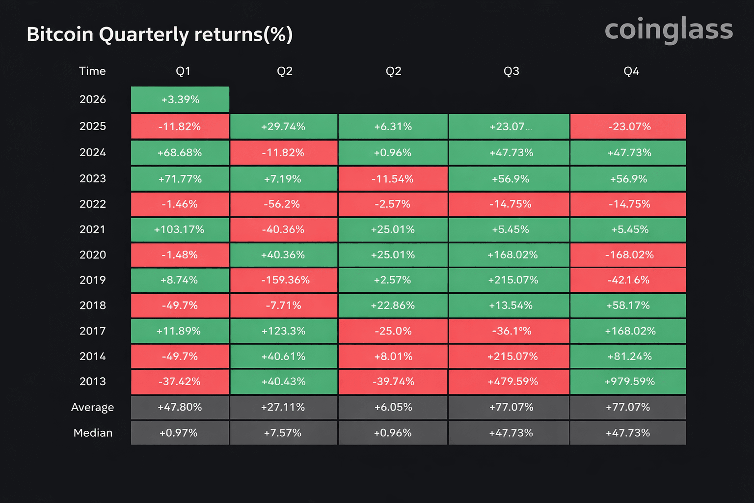 $BTC in generale ha avuto un buon rendimento nel primo trimestre. L'ultima volta che il primo trimestre è stato davvero negativo è stata nel 2018, quando il prezzo è calato di quasi la metà nei primi tre mesi dell'anno.