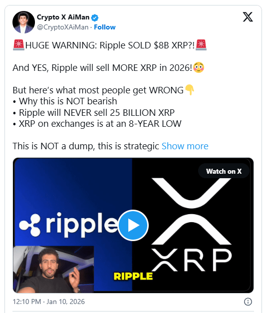 La combinazione di una fornitura sugli scambi in calo e di vendite strategiche di XRP posiziona il mercato per un potenziale crescita. Anche con miliardi di XRP venduti, Crypto X AiMan sottolinea che la domanda rimane forte.