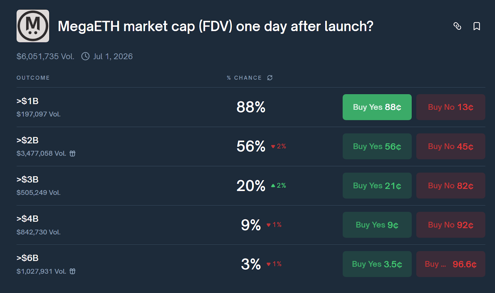 Su piattaforme come Polymarket, ci sono mercati che prevedono la valutazione completamente diluita di un token un giorno dopo il suo evento di generazione del token.