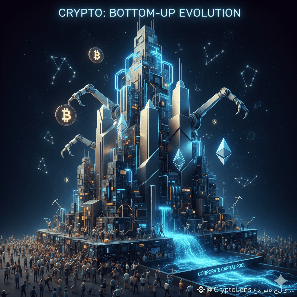 سوق الكريبتو فريد من نوعه. على عكس أي سوق مالي في التاريخ، الكريبتو بدأ من مقولة ان الأفراد هم اللي بنوا الشبكات، استخرجوا العملات، وجربوا تقنيات البلوكشين بأنفسهم. لم يكن هناك بنوك، ولا حكومات، ولا شركات كبيرة تتحكم، بل مجرد مستخدمين وشغف للتجربة والابتكار.