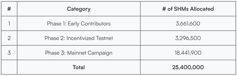 La Fondazione Shardeum prevede di effettuare il lancio SHM in tre fasi. L'allocazione SHM per ciascuna fase è la seguente.
