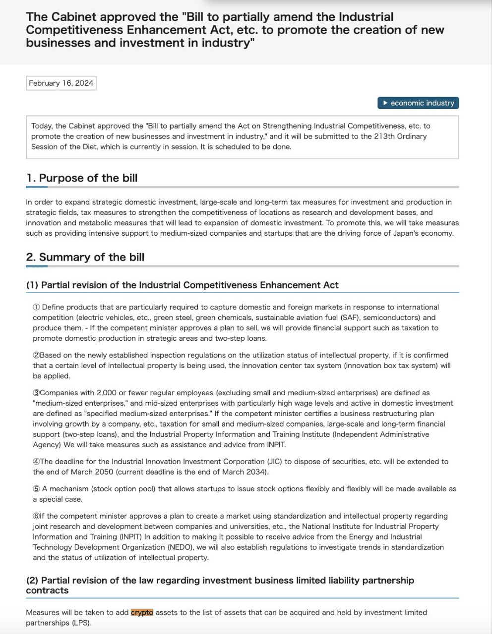Japanese government approves bill that permits Investment Limited Partnerships to acquire and hold crypto ๐Ÿš€๐Ÿš€