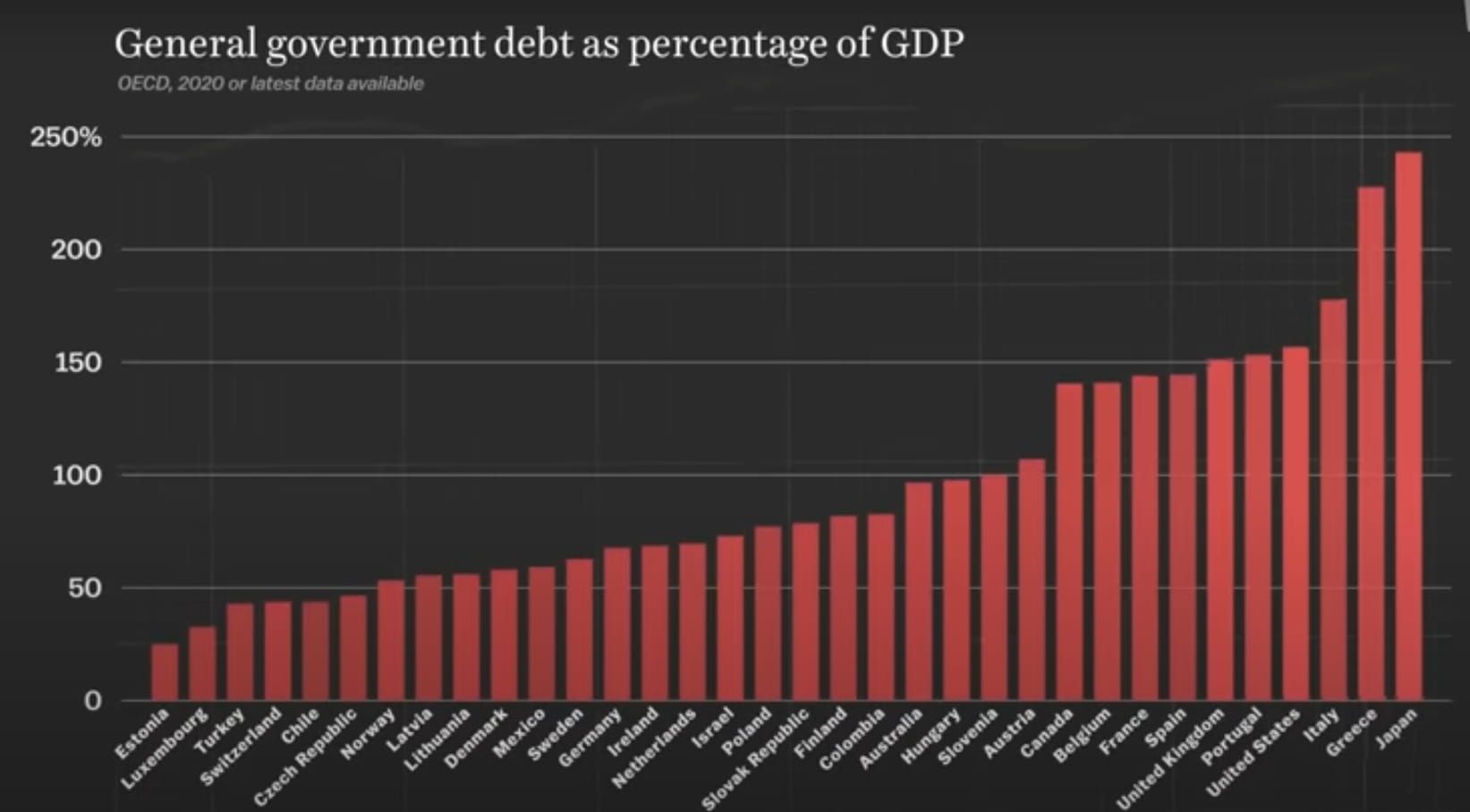 Tra tutti i paesi più grandi, il debito degli Stati Uniti è al quarto posto dopo Italia e Grecia, mentre il Giappone ha il più alto numero di debiti tra tutti i paesi del mondo.