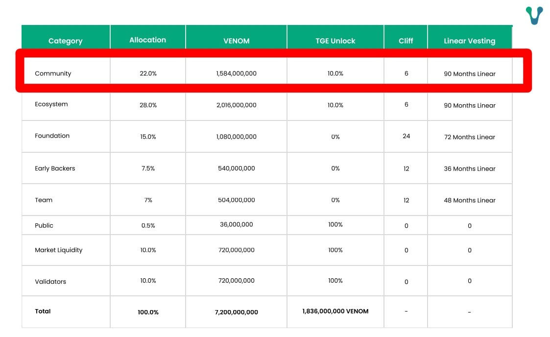 Al centro della questione c’è un lancio aereo comunitario. Secondo la documentazione di Venom, il 22% di tutti i token è stato assegnato alla comunità e il 10% sbloccato presso TGE, in particolare coloro che hanno partecipato attivamente al loro testnet. Tuttavia, dopo anni di sostegno, molti membri della comunità affermano di non aver ricevuto nulla, mentre ad altri sono rimasti quelli che chiamano "NFT senza valore". L’utilità di questi NFT rimane poco chiara, frustrando ulteriormente le aspettative della comunità.