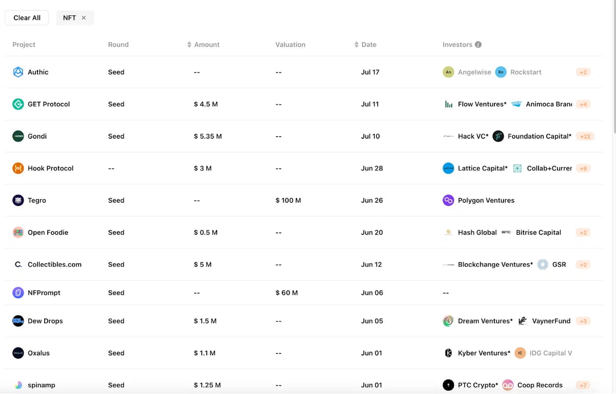 Secondo Rootdata, negli ultimi anni NFT e GameFI sono rimasti nella TOP 3 in termini di investimenti.