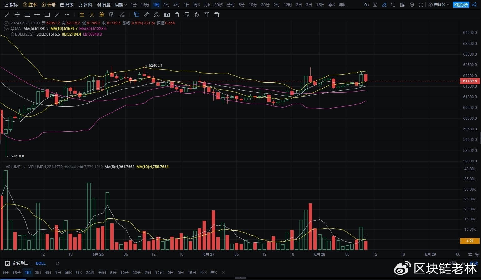 最近の運用では正確に62100でショートし、600ポイント以上の利益を上げることに成功しました。この戦略の成功により、市場に対する当社の鋭い洞察力と正確な運営が改めて証明されました。