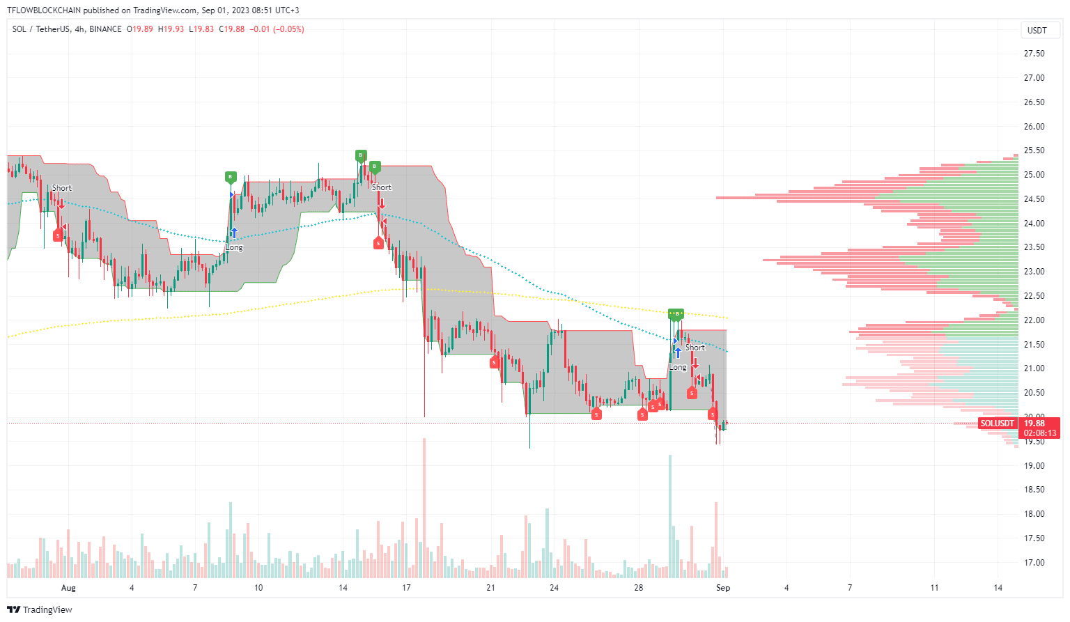 SOL is on a short mode and trying to balance at the support level of the Volume Profile Indicator.