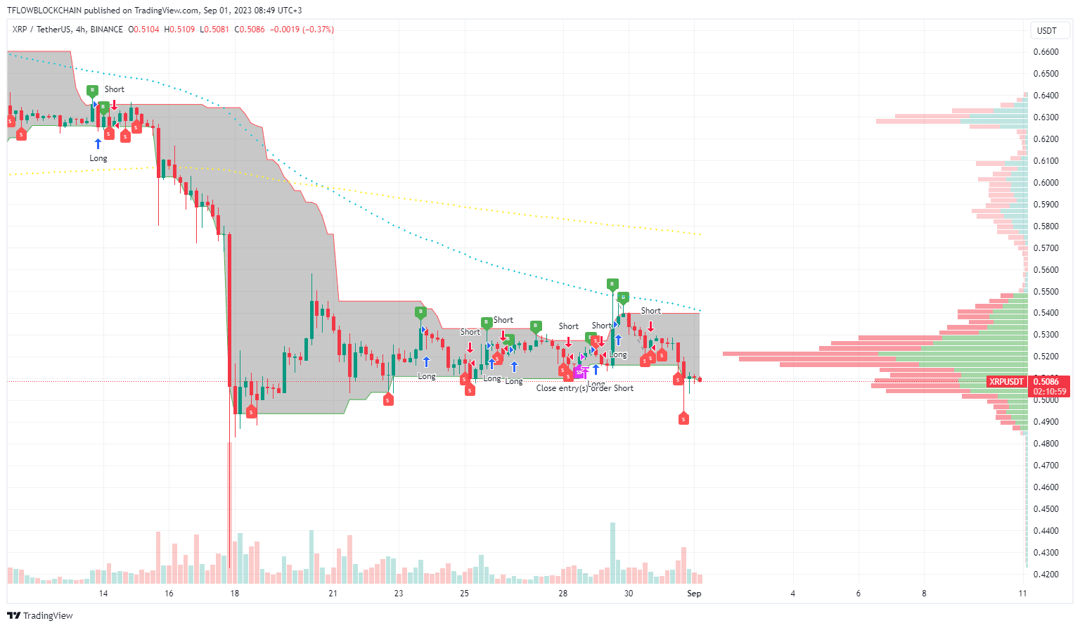 XRP is on a short mode and trying to balance at the support level of the Volume Profile Indicator.