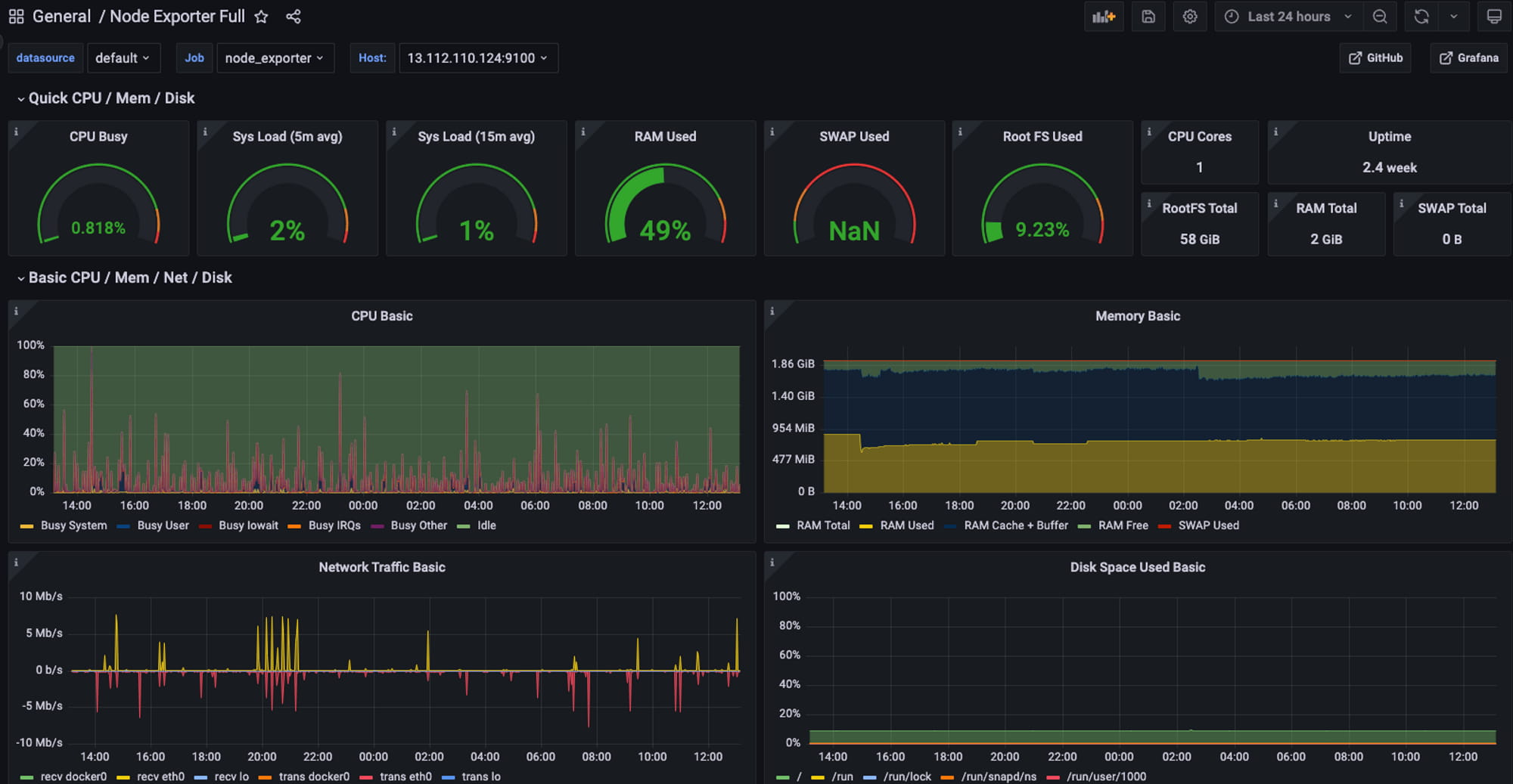 Prometheus+Grafana アーキテクチャを通じて、システムは、CPU 使用率、メモリ使用量、ディスク I/O アクティビティなどの各インスタンスの物理的な動作、およびノードの健全性やノード間のネットワーク接続などの各プロジェクト ノードのパフォーマンスをオンデマンドで表示できます。この情報により、運用チームはシステムのパフォーマンスに関する情報を常に把握し、問題に対処するためにタイムリーなアクションを実行できます。